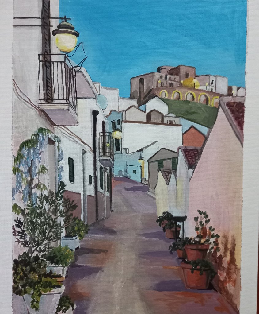 Now it’s definitely wine time. After my little bit exercise I am lovely and warm. And it’s the weekend. I’ve completed 4 local paintings this week among other things. So pretty darn ok.