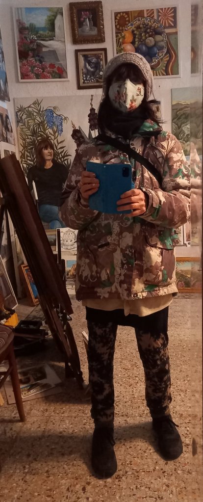 The mask I made actually works so my glasses don’t steam up when I am walking….unfortunately it is not so good when trying to paint.. But I was able to walk home and see where I was going tonight which was a treat.