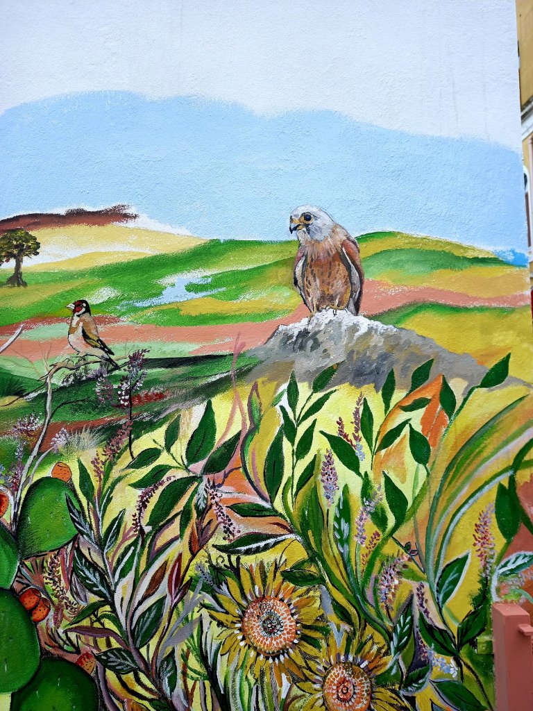 This morning my task was to paint a falcon. That seemed like a nice plan , but being left handed and the pavement sloping , preventing me using my ladder, meant I had to stand on a on step stool thing and look up.