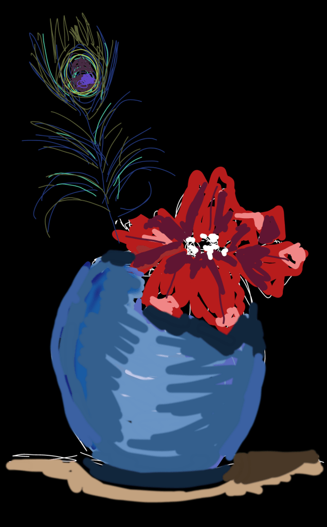 It’s become a nice routine now. I switch on my nice white standard lamp, turn on the christmas lights on the mantlepiece , light the candle, get a glass of wine, put my feet up on the chest, find the blue plastic feather shaped stylus and then look at my photos for that day as I think a minimum of 2 is necessary to make it look interesting .