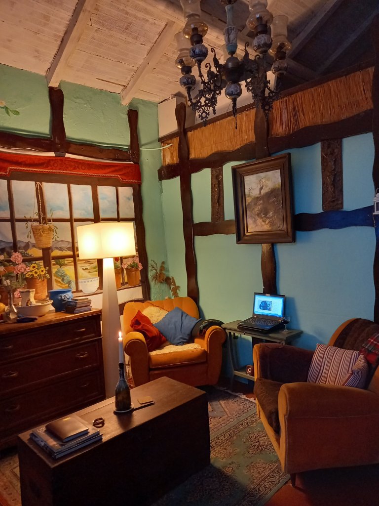 Other than that I read a lot, went on a virtual walk to a secluded beach near Positano, made peanut butter, moved 9 sacks of pellets into the cupboard and sat outside briefly twice,( it’s still cold even though it looks lovely.) And I watched part of a series called” Life in Squares “which is about Vanessa Bell and Virginia Woolf. My room here was originally inspired by Virginia Woolf’s green room . And I always liked the idea of a house decorated with paintings on the walls and doors etc.
