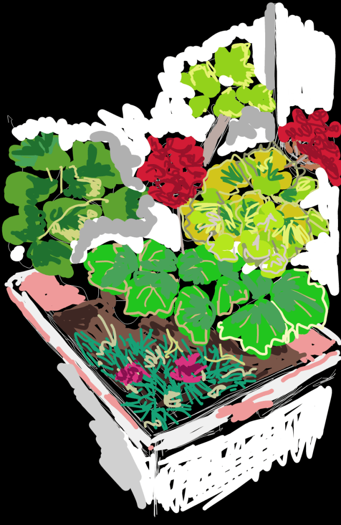 Drawing my square pot containing geraniums…or pelargoniums and other flowers, whose name I have forgotten , was one of the highlights of my day.
