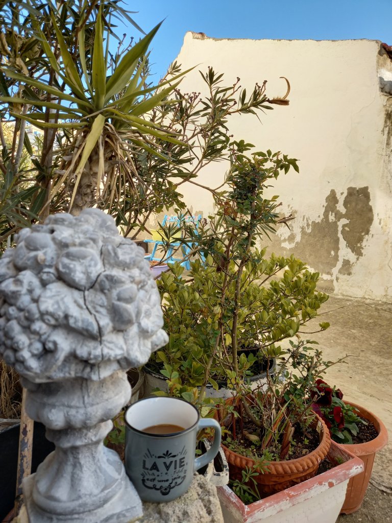 It was good to sit outside this morning with a coffee which was when I noticed my newly painted chairs matched the sky.