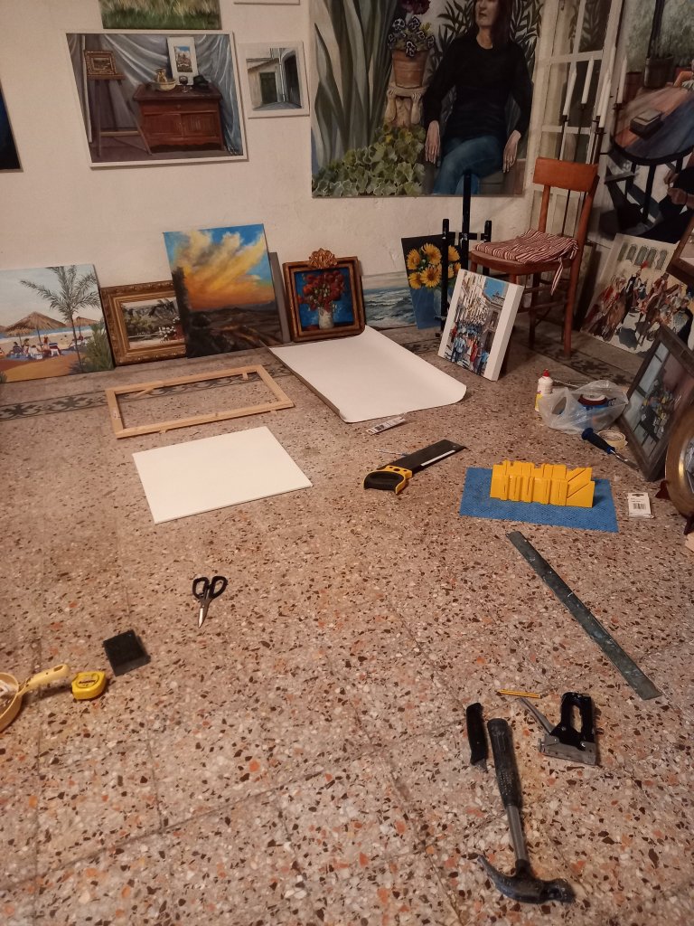 Now I have another two commissions and have been cutting stretchers and stapling canvas as one is due for Friday.