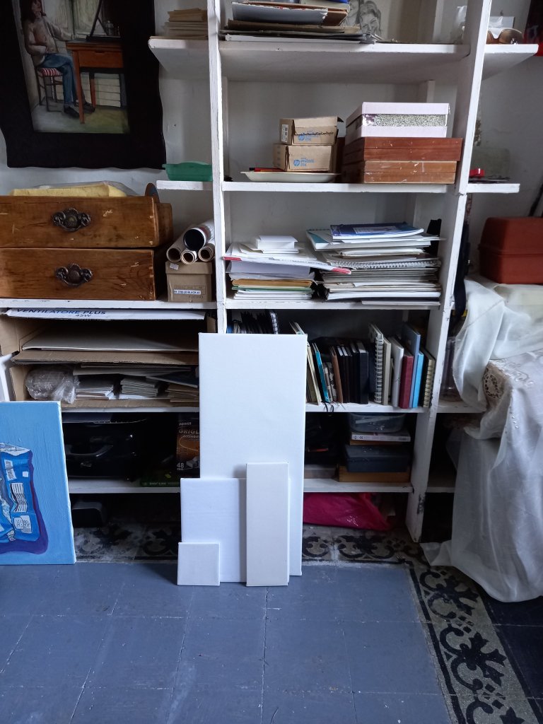 I made another 2 small canvases using off cuts today. It’s quite a therapeutic little job. There is a lot of satisfaction in holding the finished smooth canvas , relatively neatly stapled to the stretchers I made. I am even getting better at corners.