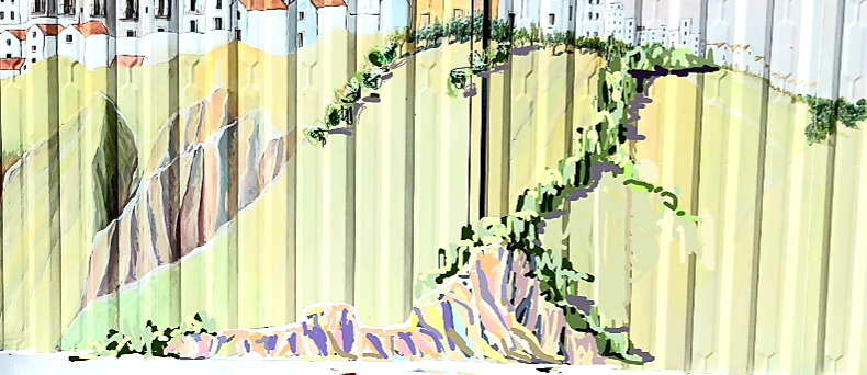 It looks like the weather will be okay for the next few days . It was easier to work today because it was cooler….apart from the strong gusts of wind. I am really enjoying the whole experience of mural painting outside. Sitting inside in front of an easel might feel a little tame after this.