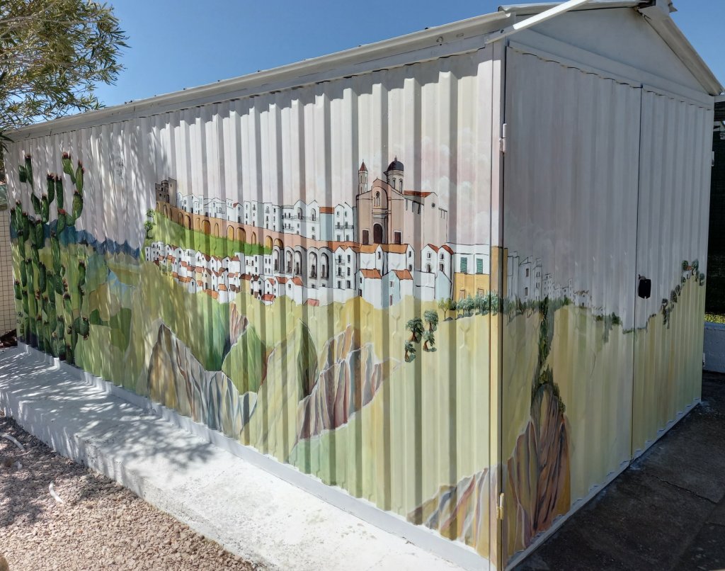 I had painted all the subjects to be included in it before ,but the challenge was to arrange everything so that it fitted together on a large surface. A large corrugated surface. ( that wasn’t actually a problem apart from a slight difficulty drawing horizontal lines. )