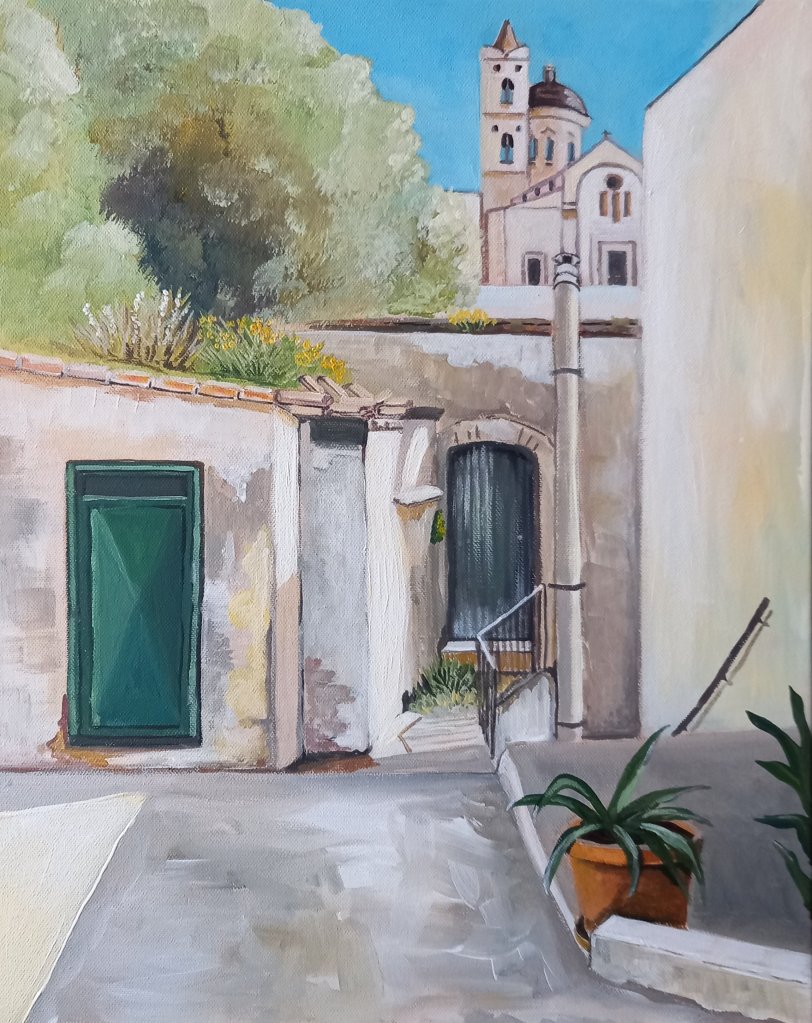 I am trying to think of new ways to paint Pisticci and little corners ,but with a landmark somewhere, seemed a good idea.