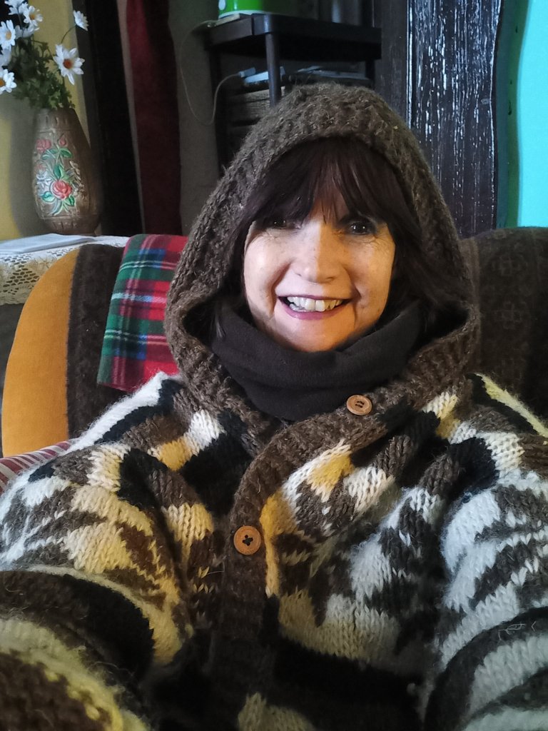 So now I have the stove on and am wearing my thick Norwegian cardigan with the hood up.