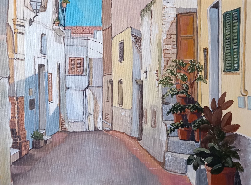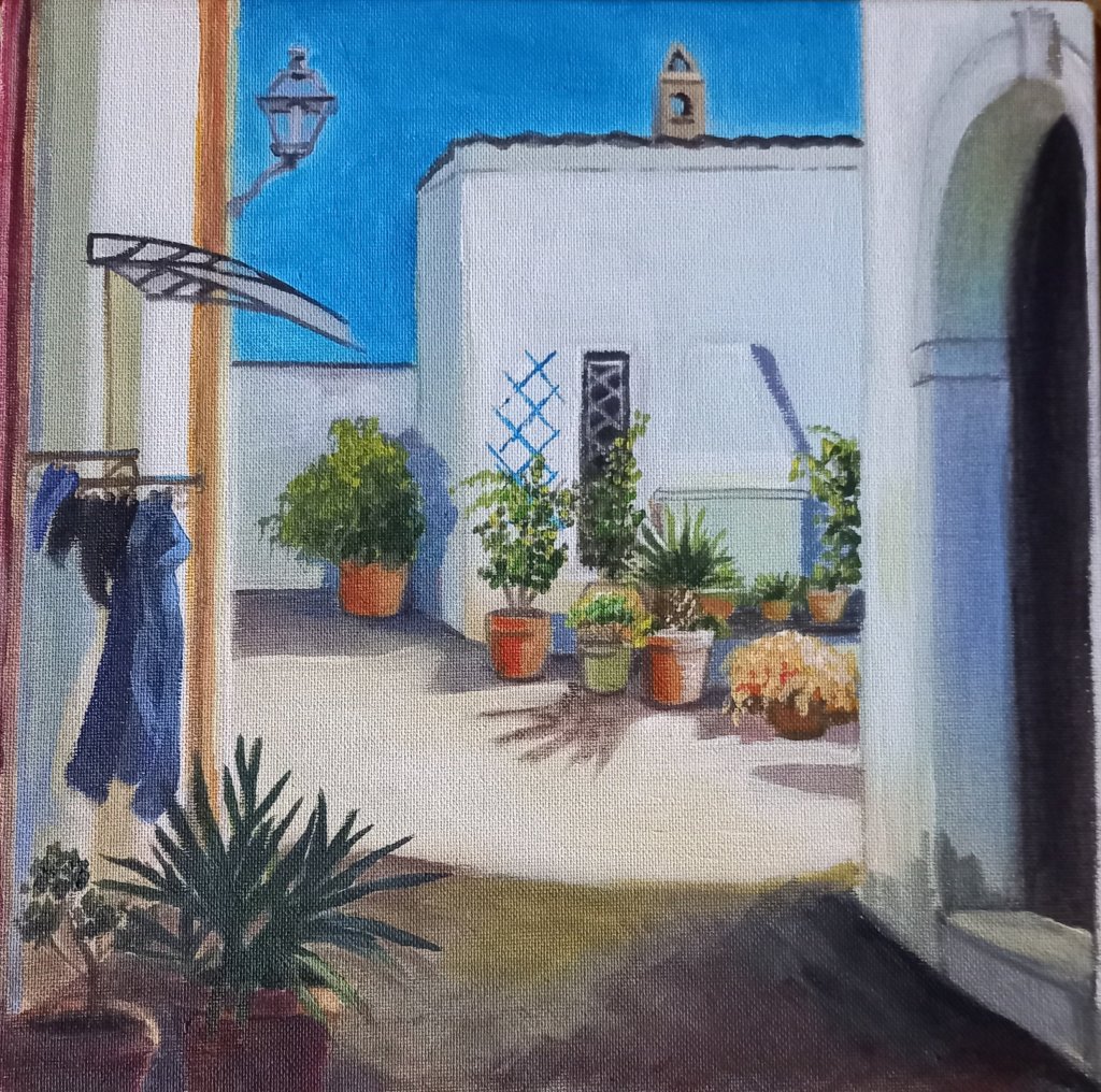 However it has been a very satisfactory day’s work. I am not quite finished ,but another hour tomorrow should do it. Then I need to chose what to do next week or better still go out and find some more sunny corners of Pisticci.