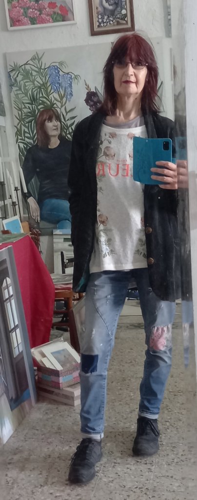 On the way to the nearest supermarket I stopped in at another Chinese shop and bought a set of fabric paints for €2 as I might want to decorate my sentimental jeans …..and hide some paint marks. And I bought two 40x40cm canvas boards as they were cheap and I liked the size.