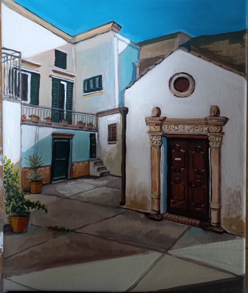 It’s nice to get back to doing my own work. I have 3 small canvases (30×25cms) which are already drawn ready to paint. The challenge for me is to make them look bright and cheerful even when they aren’t. People tend to buy colourful paintings here. And it’s more fun for me to paint. I am also trying to show the sunshine in each scene.