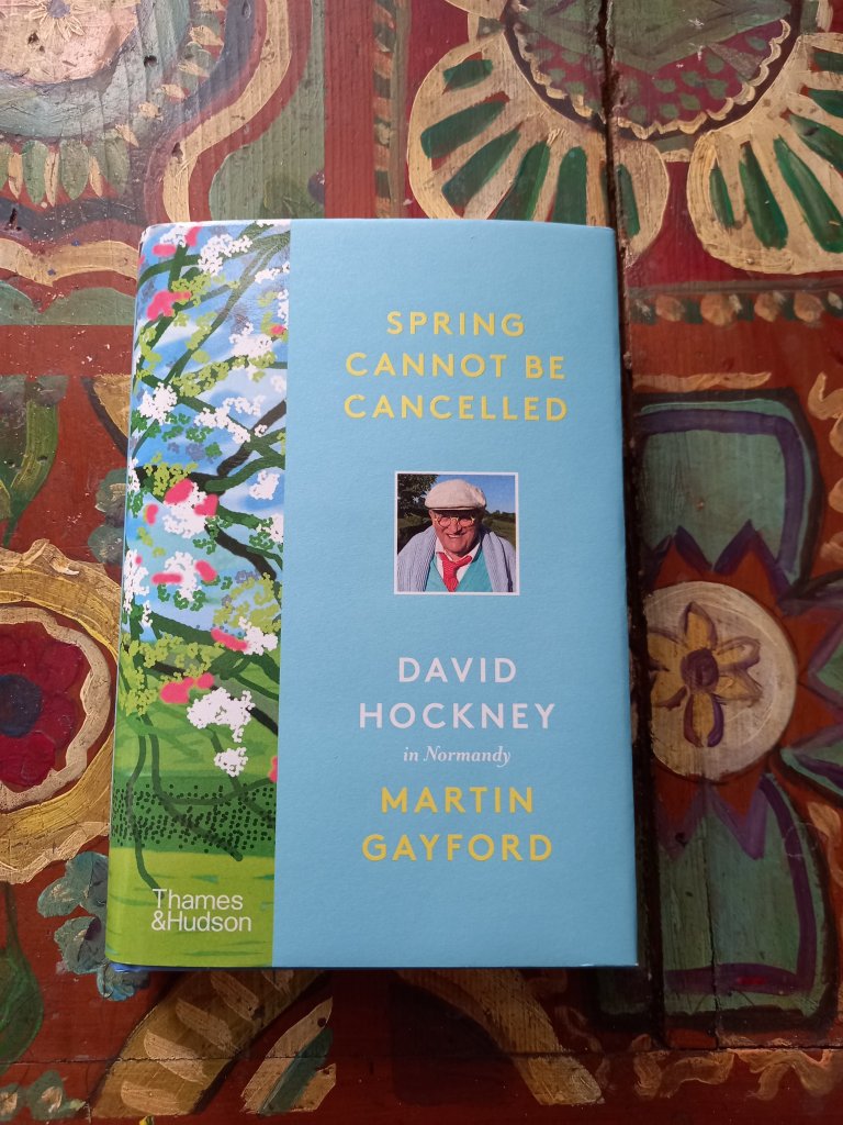 After lunch the cheerful postman called to me as he had a parcel for me. It was David Hockney’s book ” Spring cannot be cancelled. “.It is sitting on my table and I keep picking it up , looking at it and smiling. It was a complete extravagance. And I am so happy .