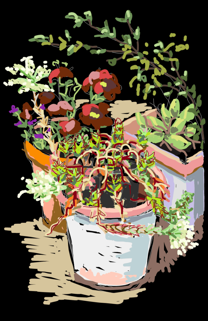 This morning I was found on the doorstep as usual with a coffee and a resolve to not let that darn plant get the better of me. This time I tried to draw it on my tablet in among other plants. I think it is maybe a little better , but am still not pleased with it. However as a group of flowers it looks okay