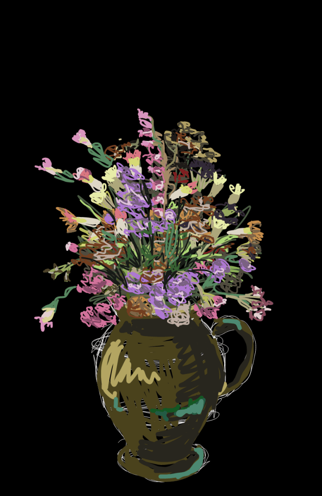 I thought that I would paint my half dead flowers in the vase this morning. They were outside as they were a bit smelly. Now that I have painted them I can throw them out.