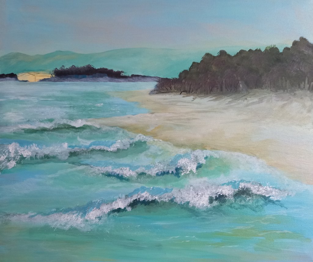 Today I painted a lovely white flower which is now scenting my room. I finished yesterday’s painting and started a seascape. It has been very hot again.