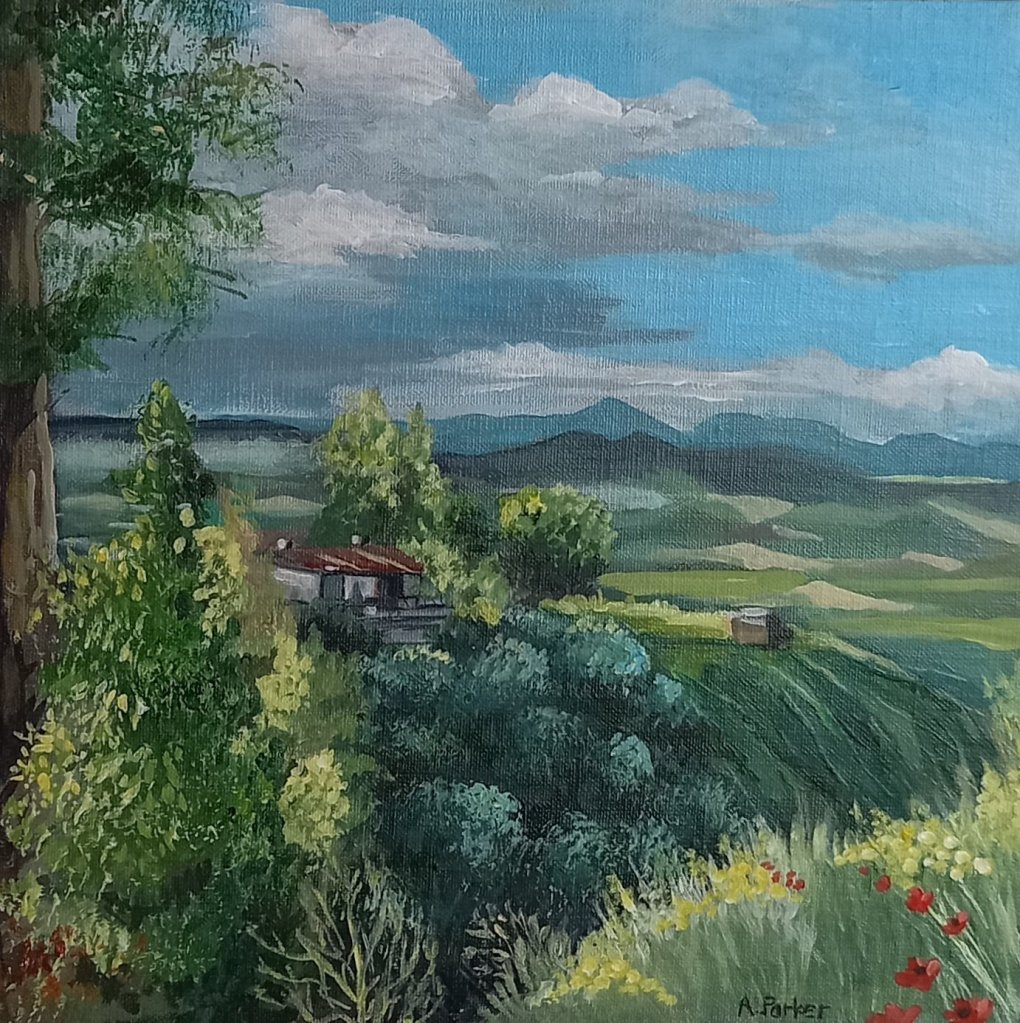 I fixed this older painting today by adding highlights and some poppies ,because an artist friend said that if you added red to a painting it would sell. We’ll see.