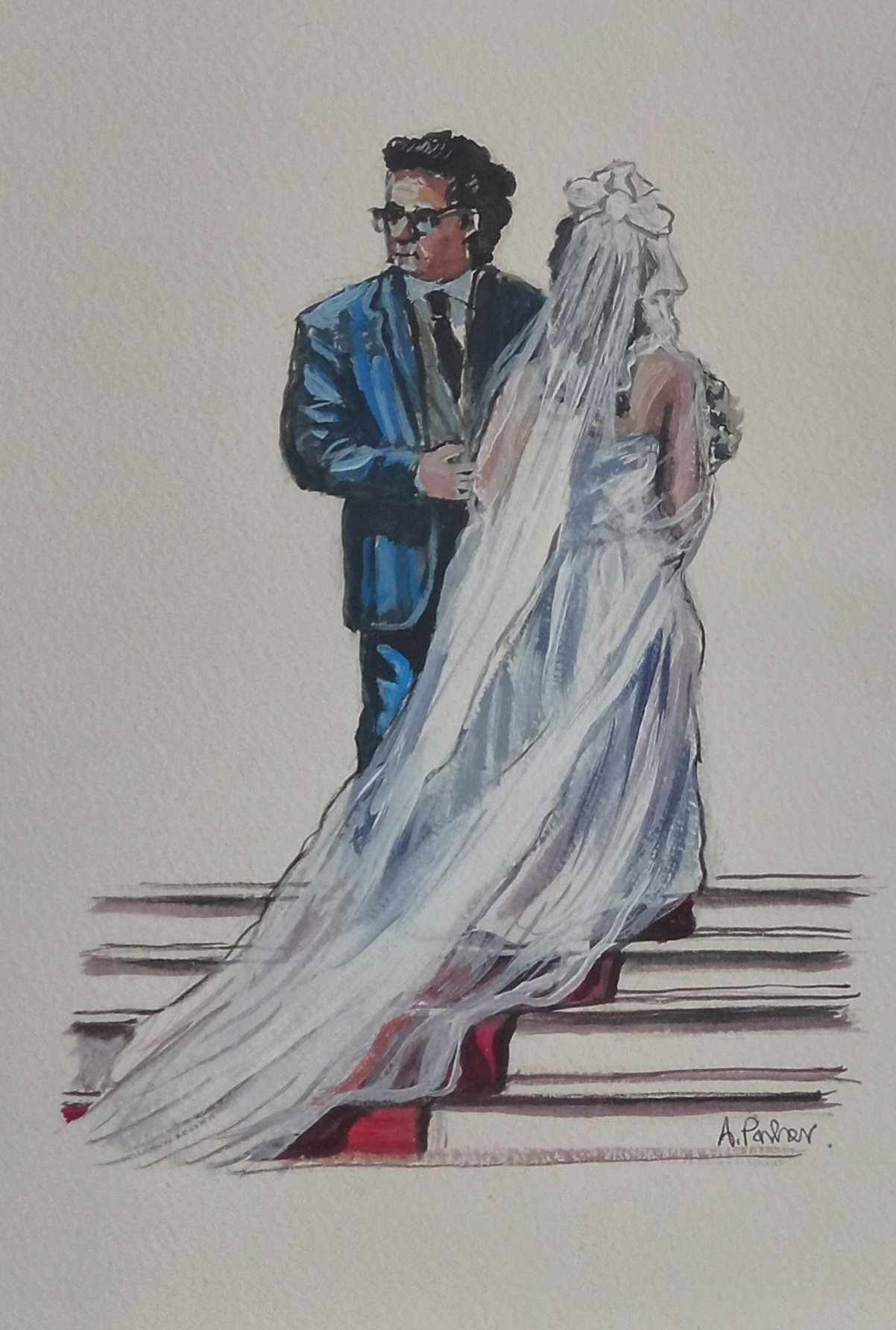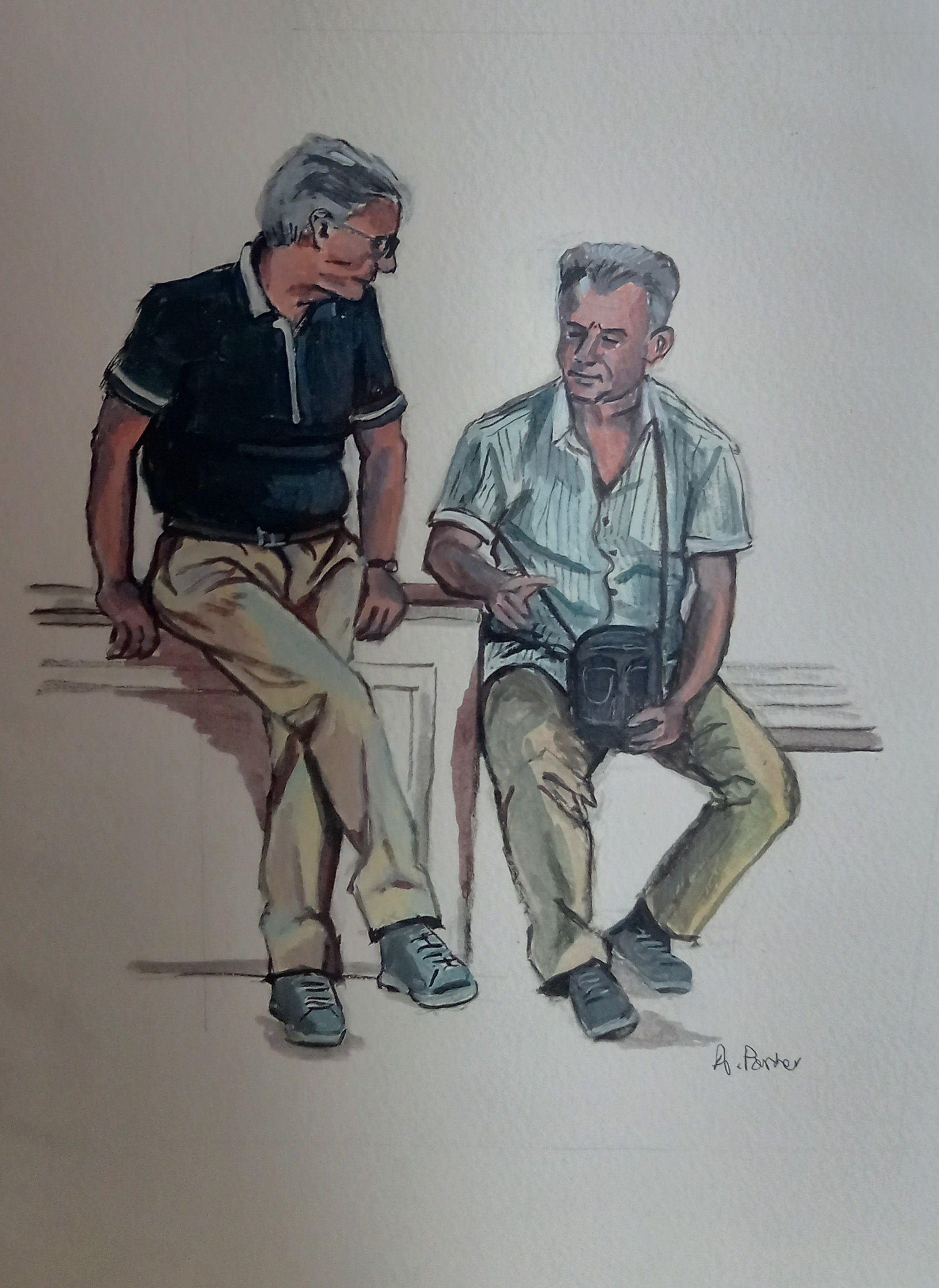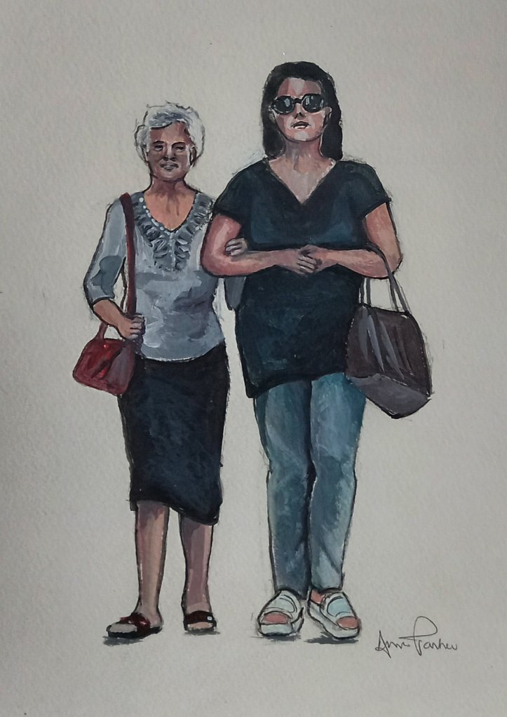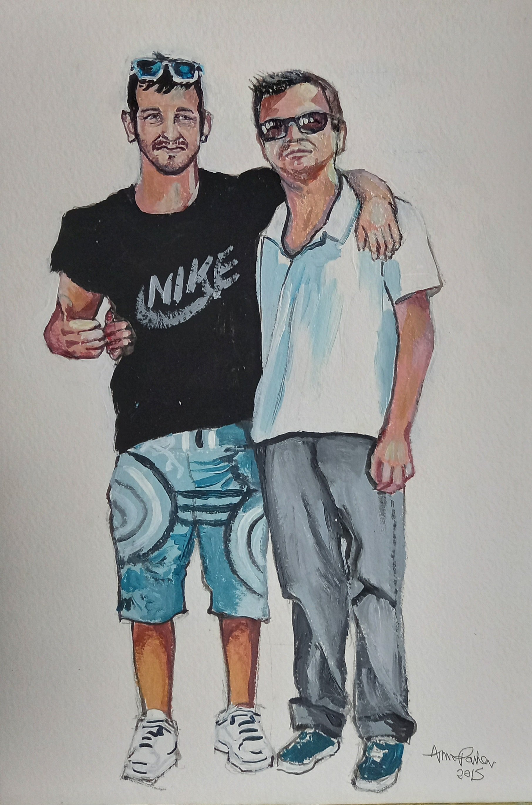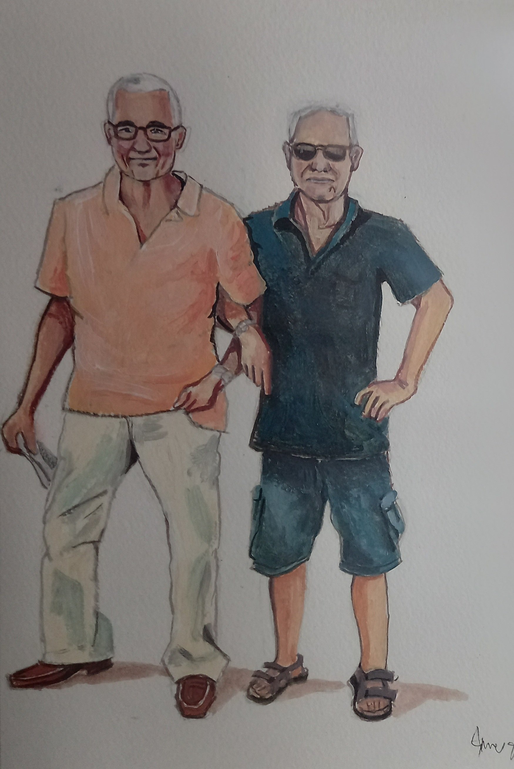 They are fun. And they are not bad likenesses even though small. I think I drew them with a pencil, then drew over with a pen and finally used acrylics for colour. They are on watercolour paper.
