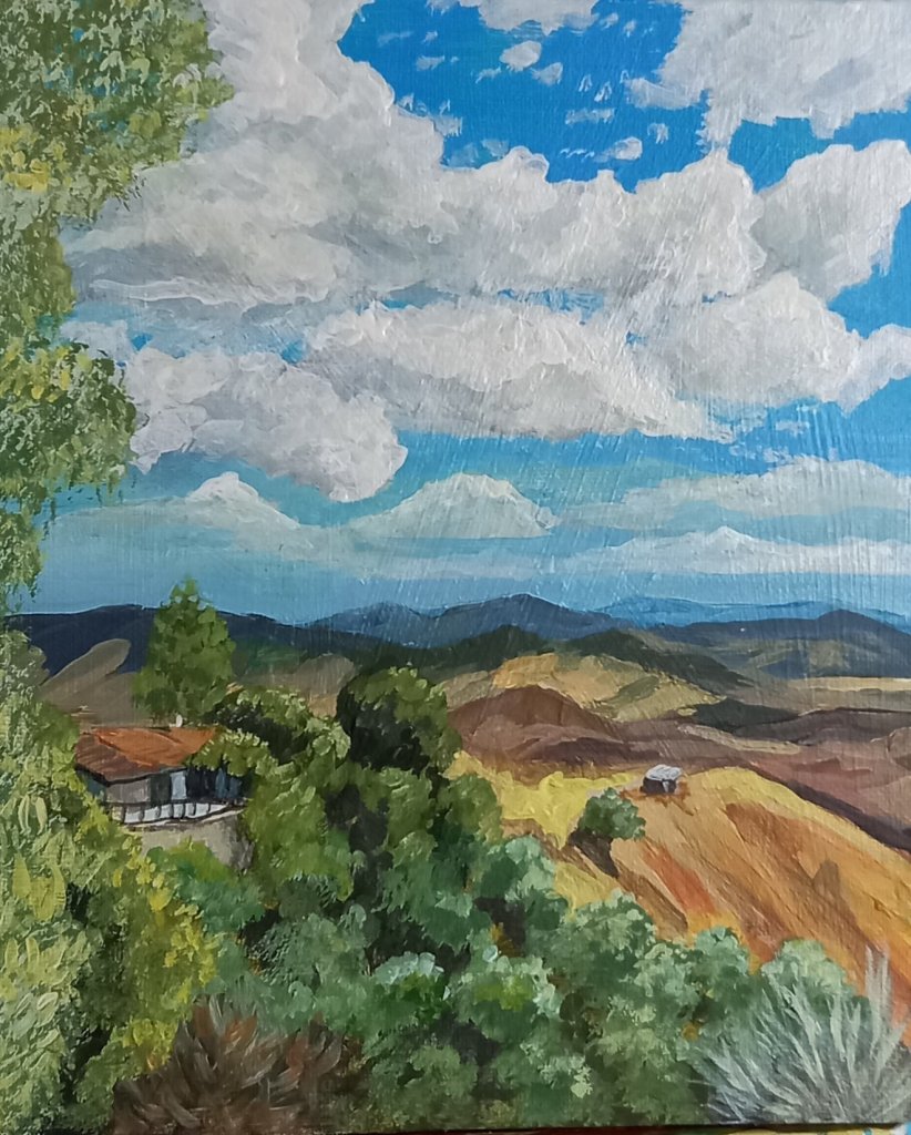 At the same time I found a scene from the end of my street and thought it would be good practice painting clouds. More practice needed.