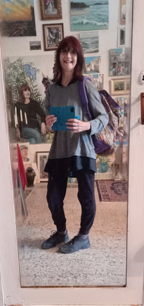 My last 3 portraits went off today along with a view of a corner in Pisticci. That was 5 paintings in a week ,including 2 double portraits, 2 triple and a flower painting. Glad I could do it, but probably best not repeated.