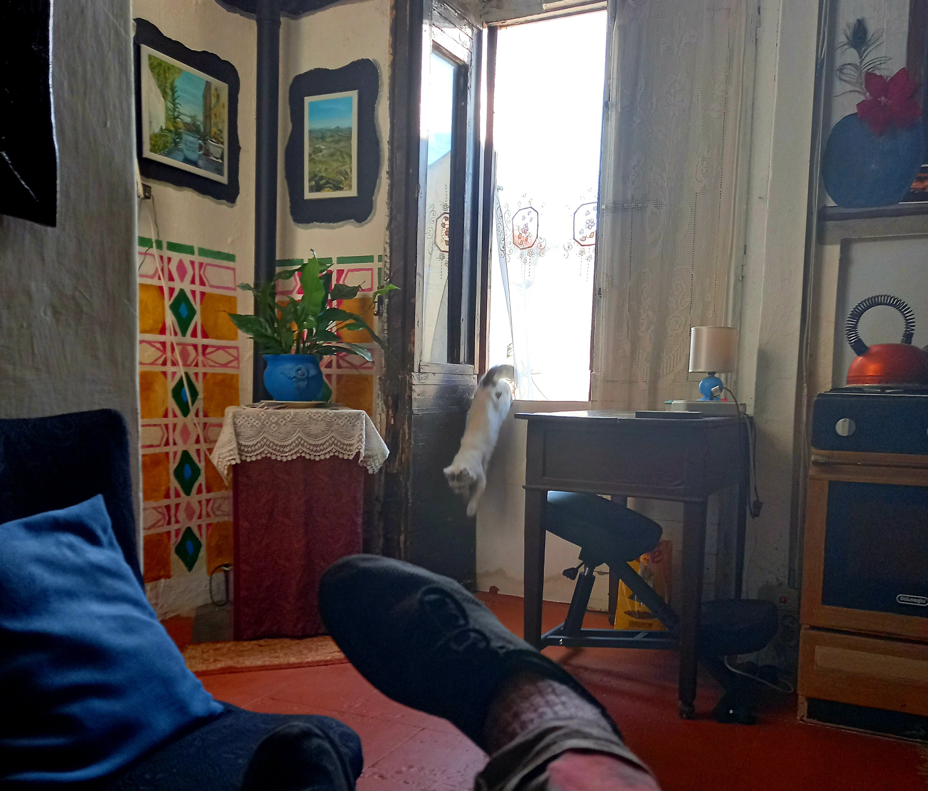 The day began as usual with me sitting outside eating eggs and mayonnaise which I now feel obliged to have every day as Brutto likes it so much. He comes inside and sits there waiting while I mix it all up and gives the odd squeak if I’m not quick enough. Then we go outside together and I eat while throwing him bits of egg white. He doesn’t like it without mayonnaise . I tried without, but he just looked puzzled and ignored it.