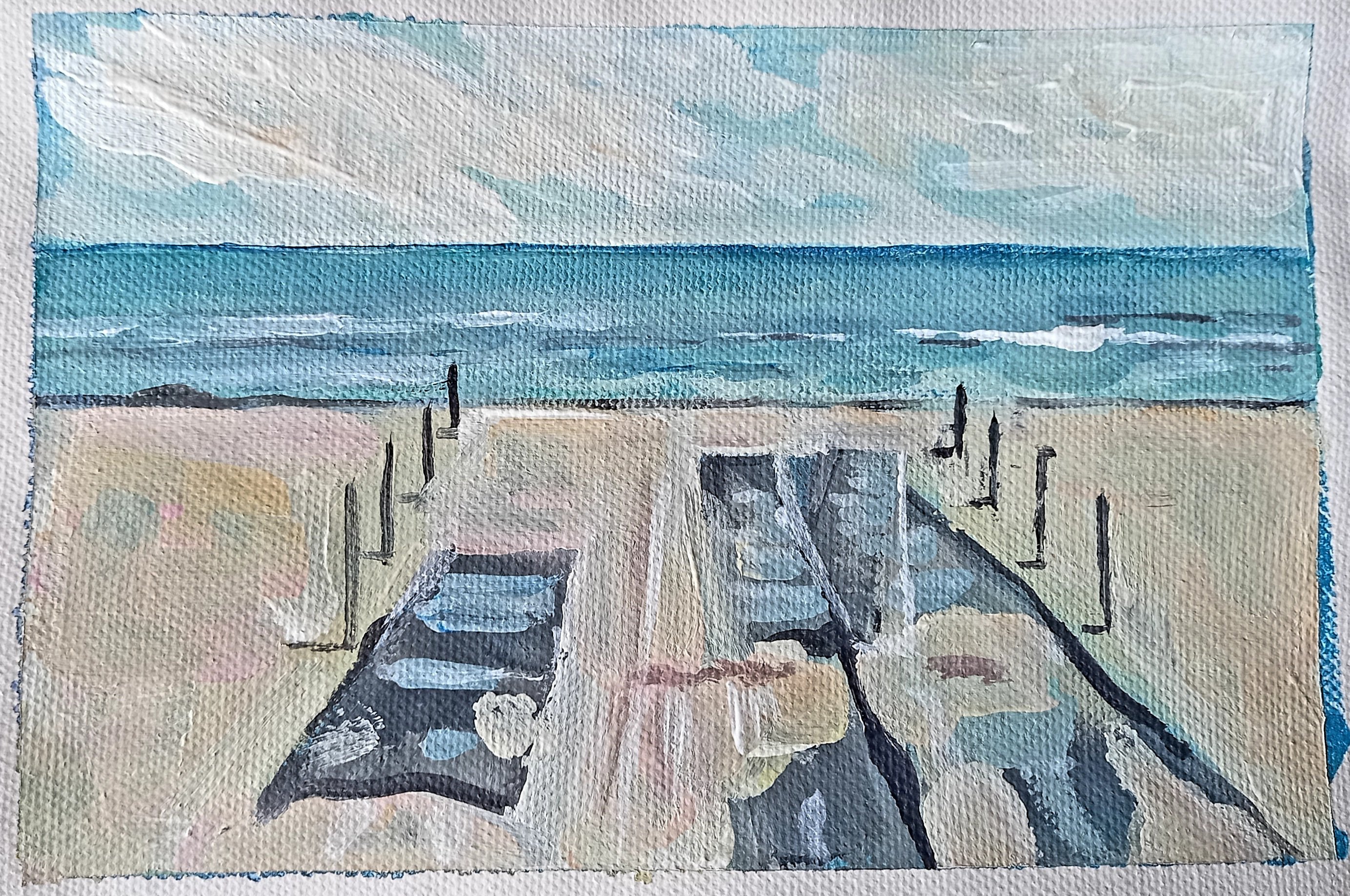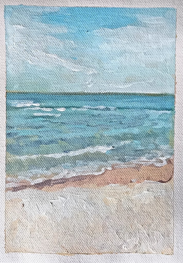 On a happier note I thought that I would paint something to cheer myself up and actually enjoyed painting a seascape . I am quite pleased with it. I straightened the horizon in yesterday’s one and it looks better now as well .