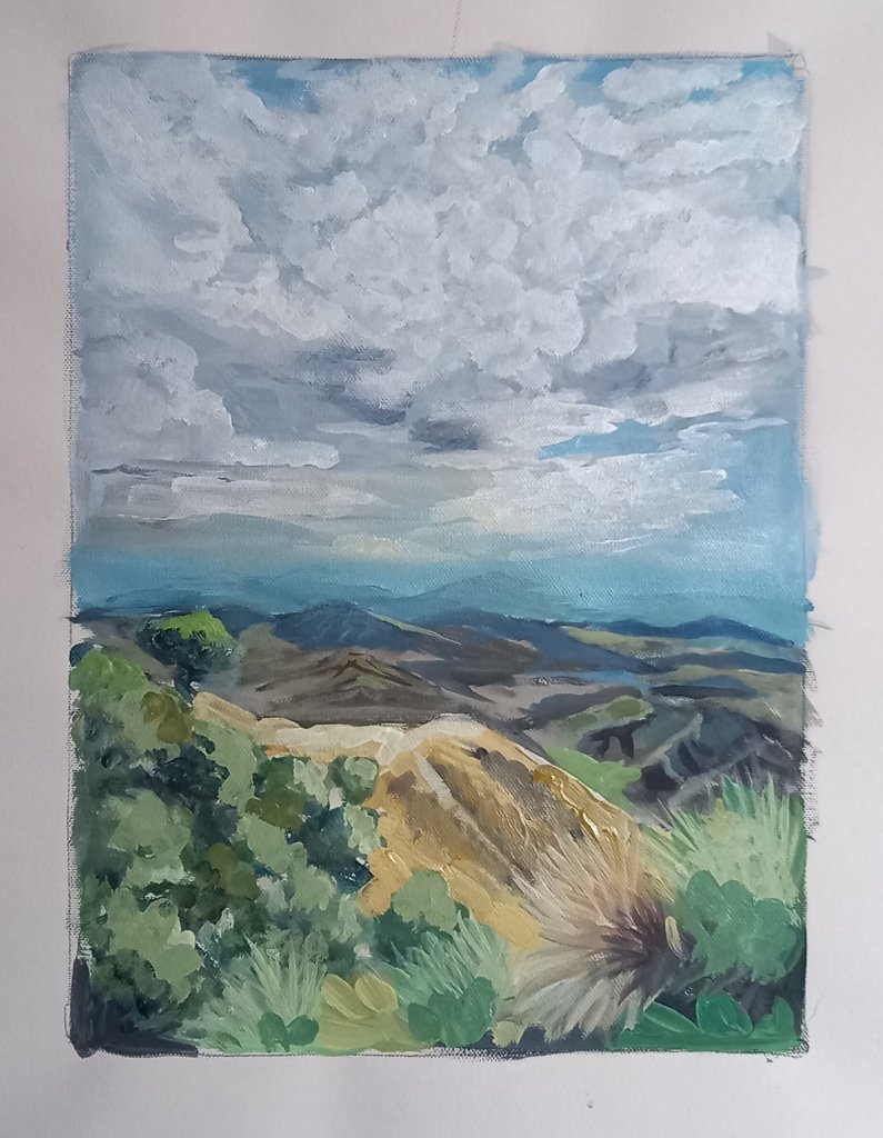 I know from past experience that when painting is going well then I feel better. Today I finished the first of 4 paintings of light effects in the valley. I think its okay.