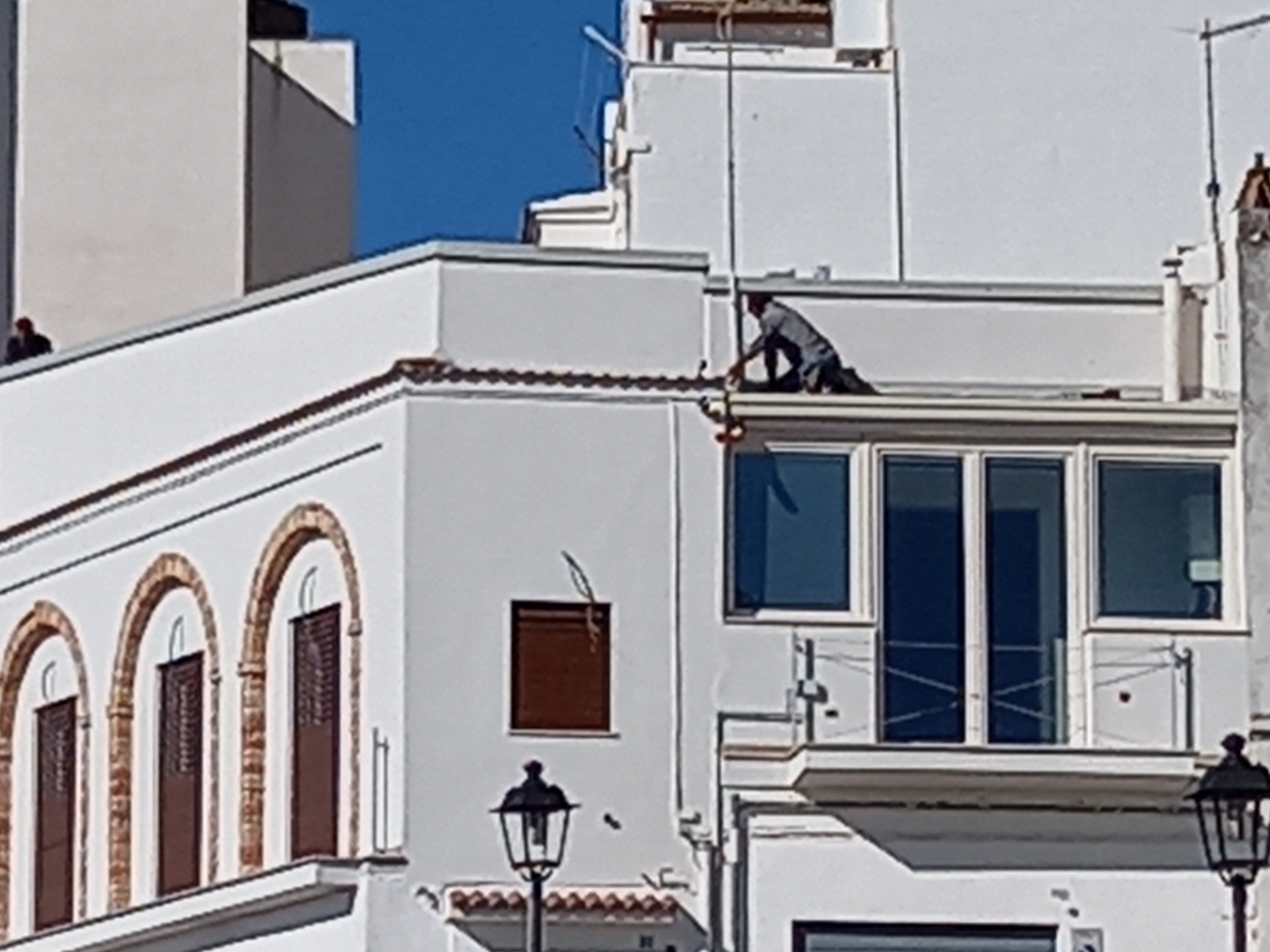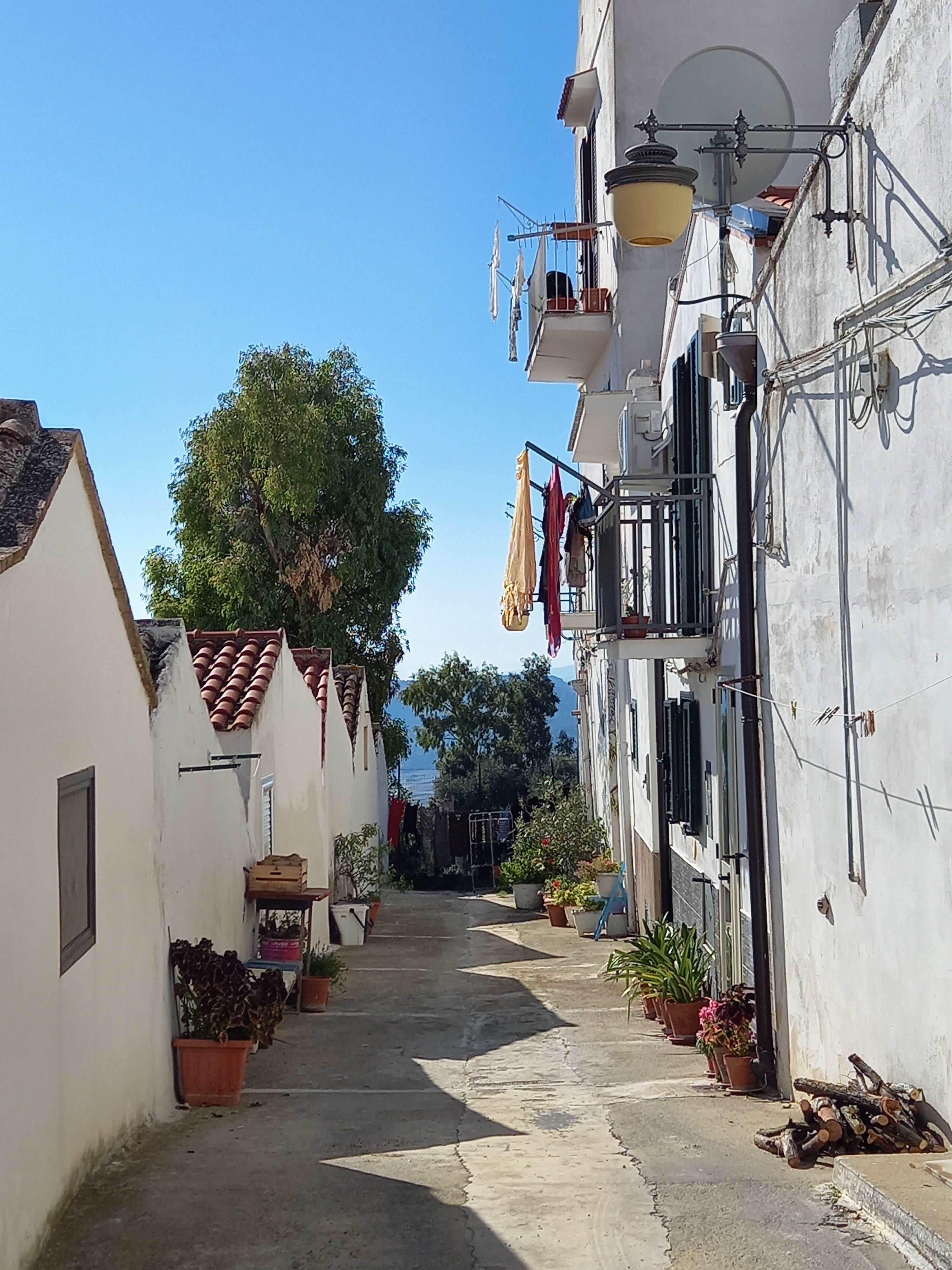 I sat on a bench up by the church and was entertained by watching mad cyclists in lycra. Pisticci is on the top of a hill and hardly any of the town is flat. I think their cycles may have had engines. Then there were builders up the top of a house nearby. Casually strolling around the roof. In the distance I could see my neighbour hanging out her washing.
