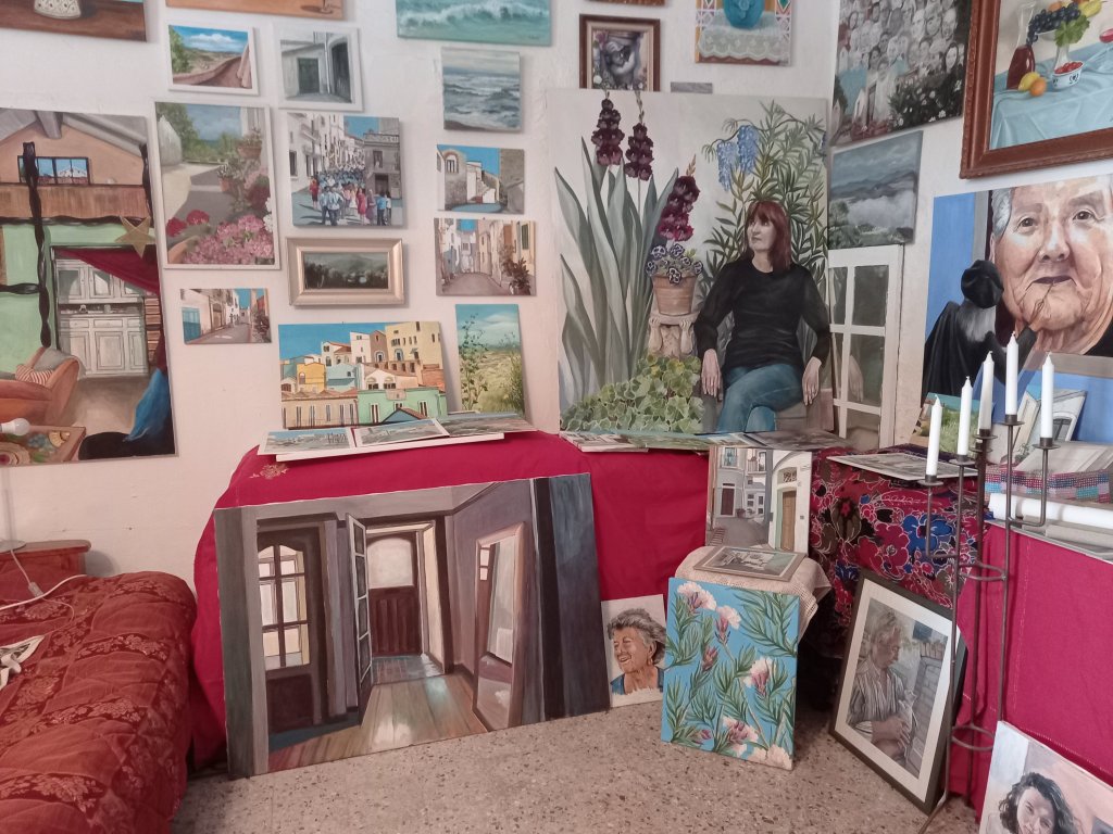 However half of them arrived …in a car! I was very impressed. I helped stack them and was glad to see that they would probably fit . I am very grateful to the guy from the ferramenta for ordering them and then delivering them. The second half arrived soon afterwards and it took me about half an hour after that to move a few into a cupboard , cover the others up and rearrange paintings in front and on top.