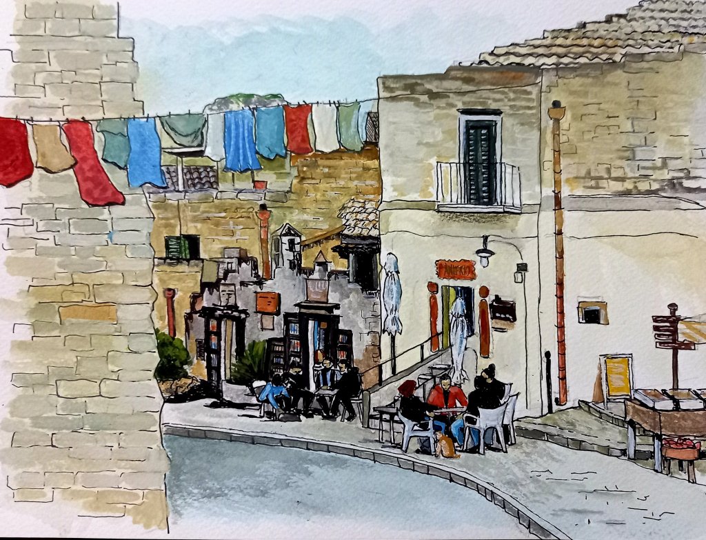 This morning I felt like starting another watercolour .This time I really wanted to paint a scene from Matera. There were several photos to choose from. Some were more complicated than others. Some were possibly more sellable than others.