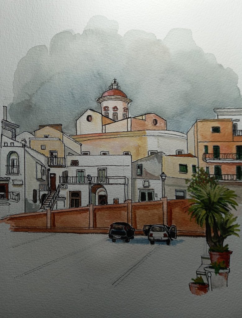 So after some fiddling around with yesterday’s watercolour I set off for the comune to get a document saying that I don’t have a TV and therefore the TV licence fee won’t be added to my electric bill. You have to opt out.