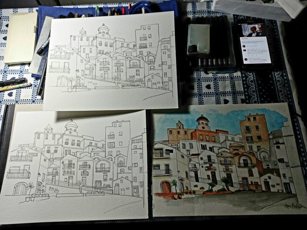 My 2 children’s portraits are finished and look fine. I drew 2 more pen sketches today as one of my watercolours is popular.