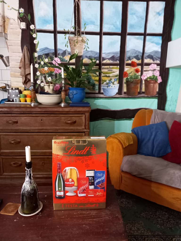 What a very lovely surprise. It was a Christmas gift from a friend. What a treat. Chocolate,cake and fizzy wine.