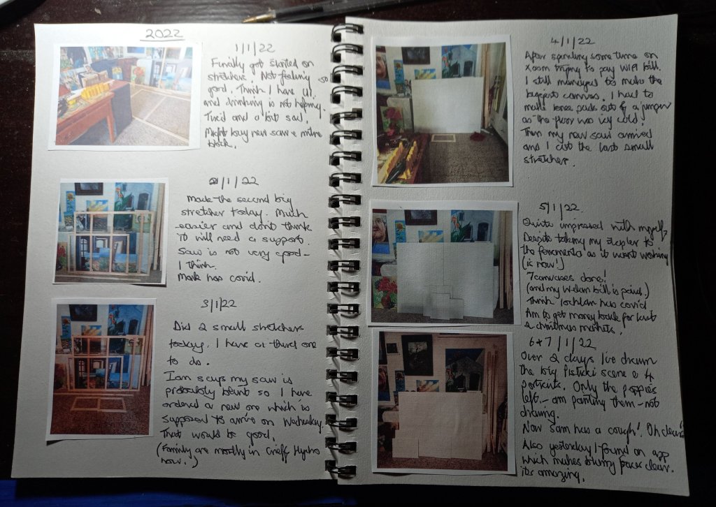 Despite my relaxed, idling ways , from the first of January I have made one very big stretcher, a medium big one and 4 smaller ones. Then I’ve stapled canvas onto all of them plus another 2. Then I’ve roughly drawn the subjects on all of them ….except the big one as that will be poppies and I’ll only paint them.
