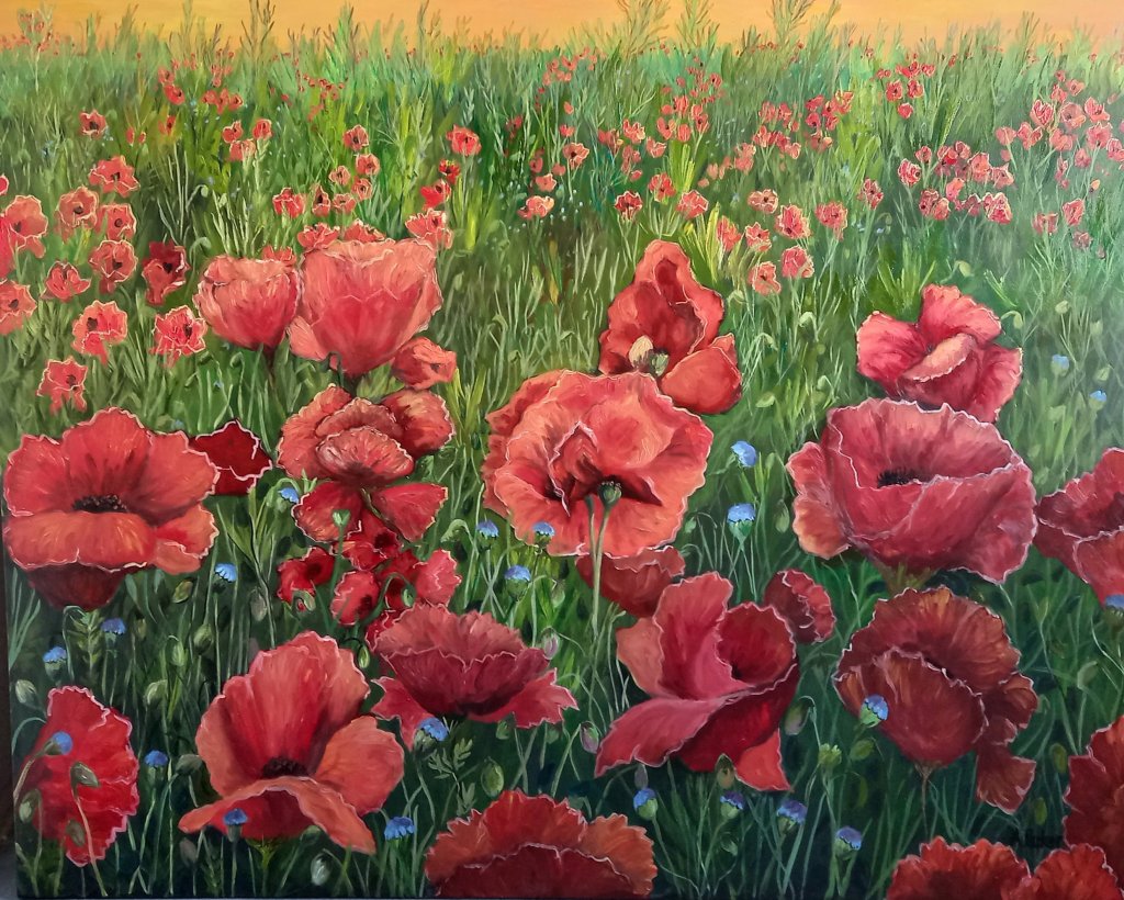 Am waiting for the “poppy people” to arrive with a van or a large car to take away my big Poppy painting. ( 150x120cms) I think it’s the biggest painting I’ve done, and with oil paints. I’ve enjoyed looking at it and thinking, “I did that”. It was good not to be rushed so I had time to finish it well.