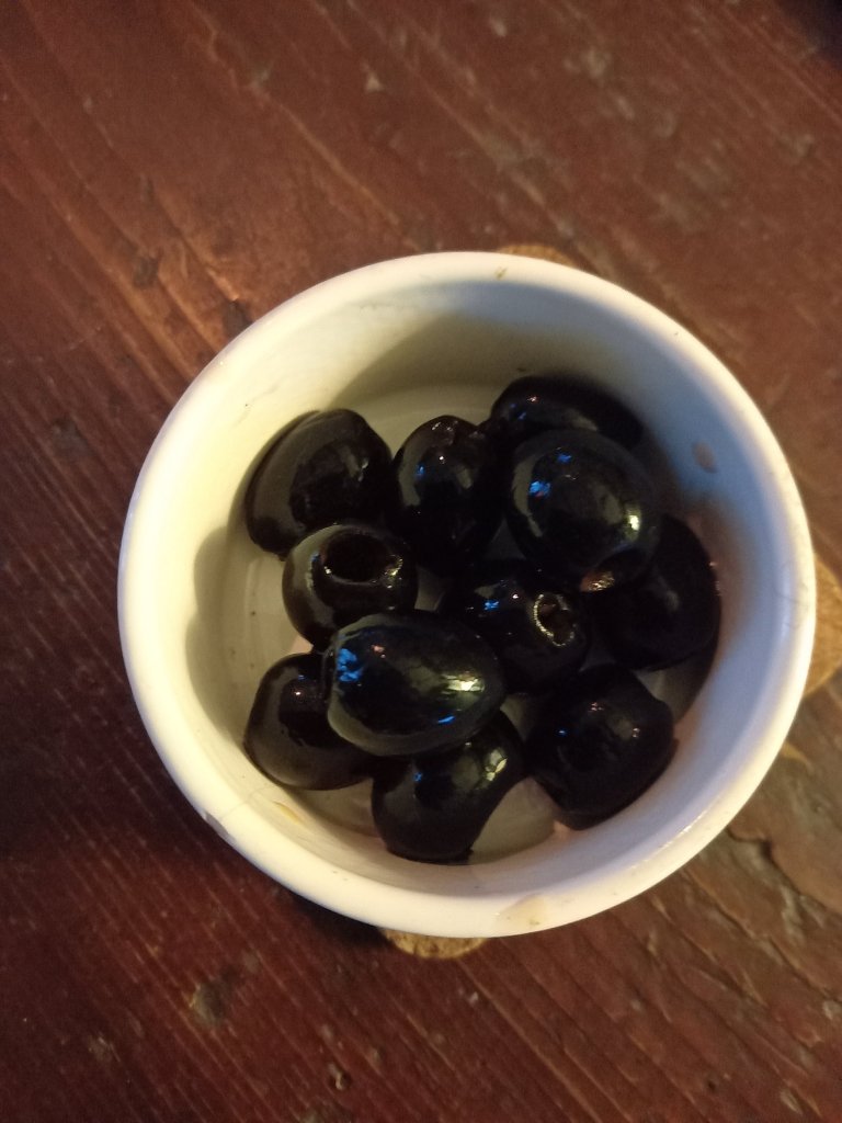 Am glad it’s wine time now. I have some black olives which I bought months ago and was saving for something or other. I’d forgotten about them and found them when I tidied out the food cupboard.