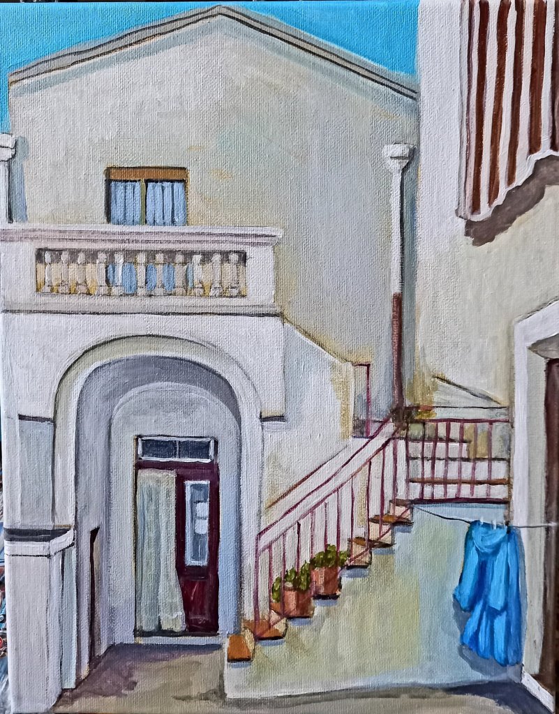 I got up, did yoga, wrote a bit, worked on a portrait, then a local scene and now it’s wine time.