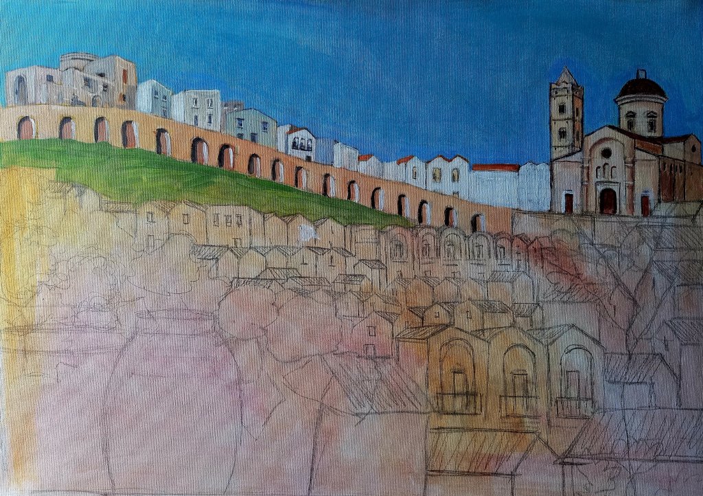 Maybe I knew today that I needed to draw all these new scenes so that I have something constructive to do while waiting to see what happens next. I may as well paint Pisticci ……
