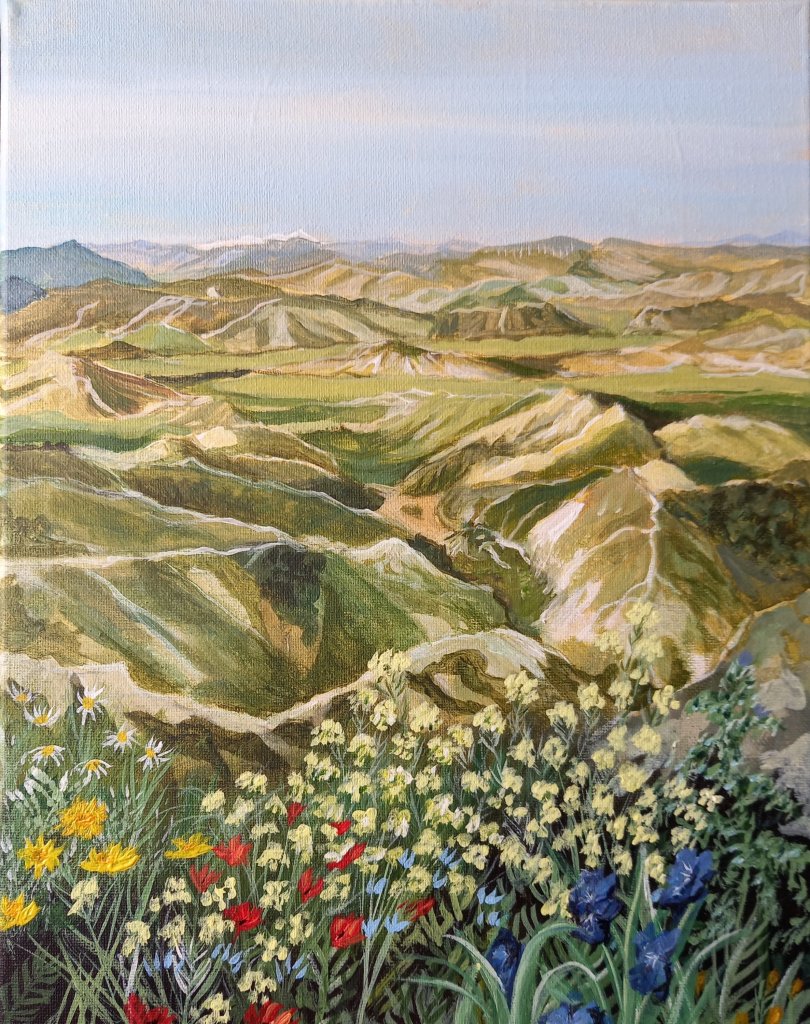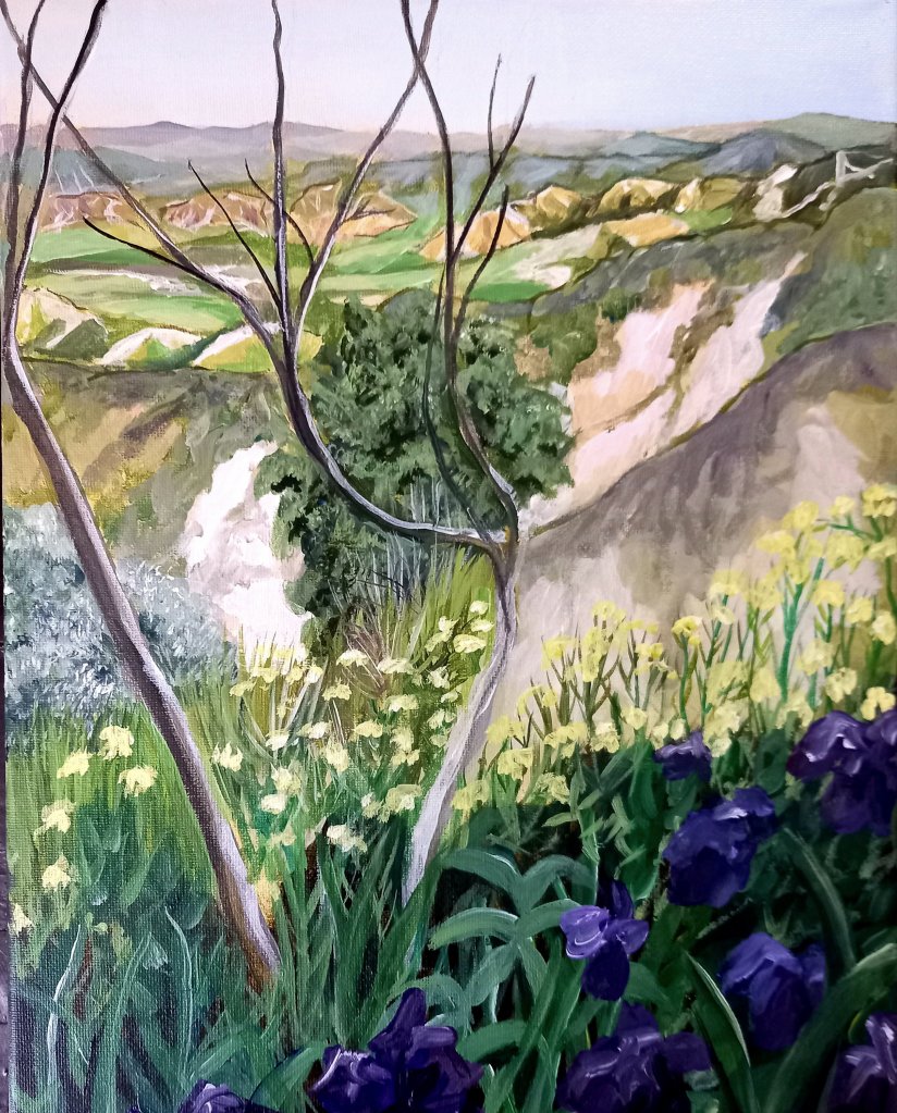 This morning I got to work on yesterday’s possible commission of the calanche with spring flowers. And as I finished it at lunch time I carried right on with a second one.