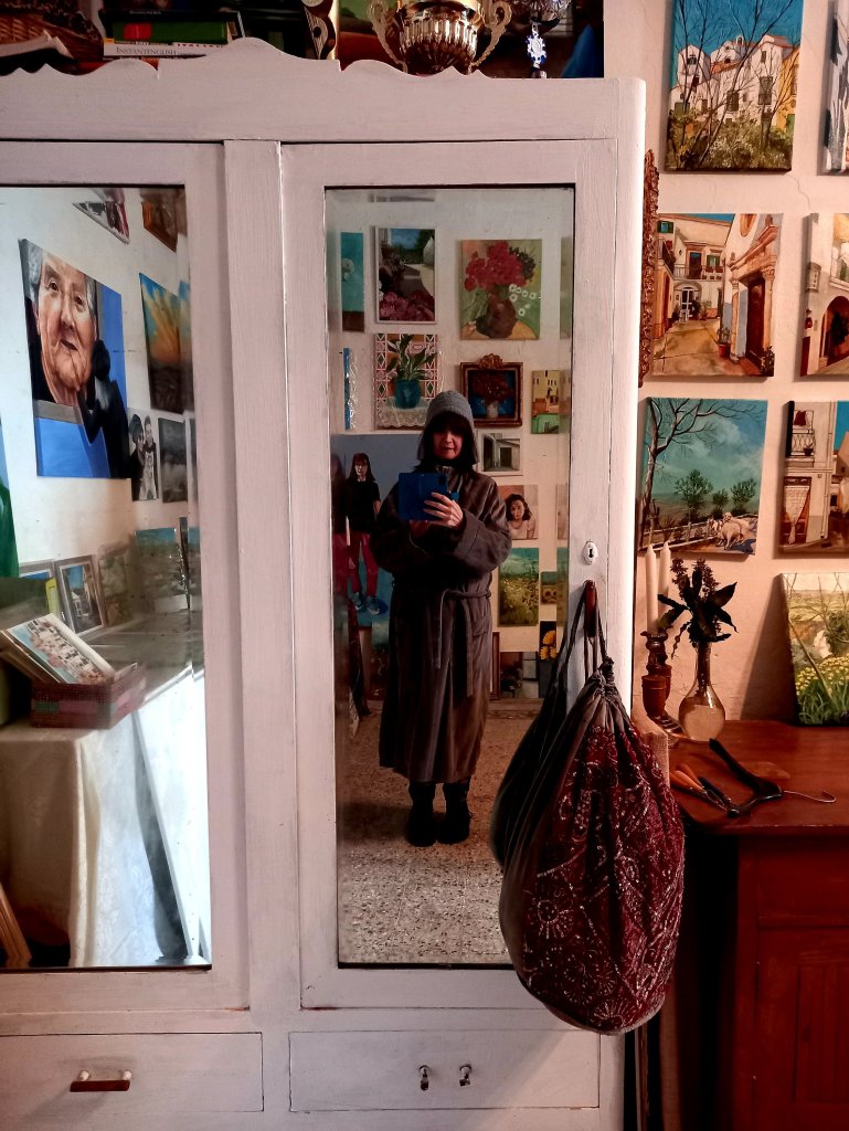I can’t believe that I am sitting here wearing James’s dressing gown over my clothes and wearing a hat.