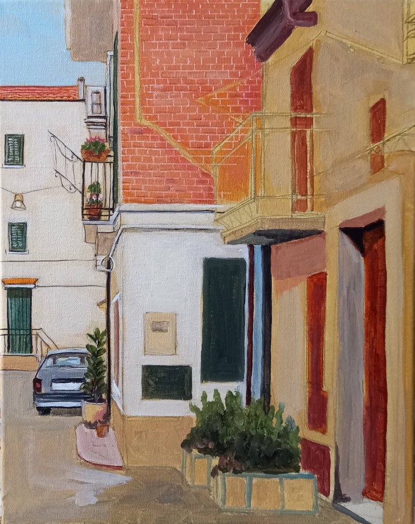 This morning I thought that it might energise me if I went out for a walk in the wind. I didn’t go near the pink brick road as I was afraid I’d get blown off. I was actually helped up the steps into the piazza San Rocco by the wind. That was quite nice.