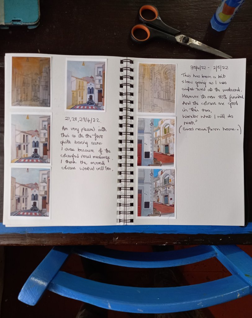 And then caught up with my work diary. This is my third one since I begun last summer. When the evil printer deigns to work, (Slamming the paper tray seems to help. ) then it prints half decent images