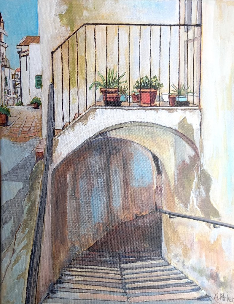 I passed by my latest painting which I’ve not been happy with and added some light blue where there shouldn’t be , but now I like it.