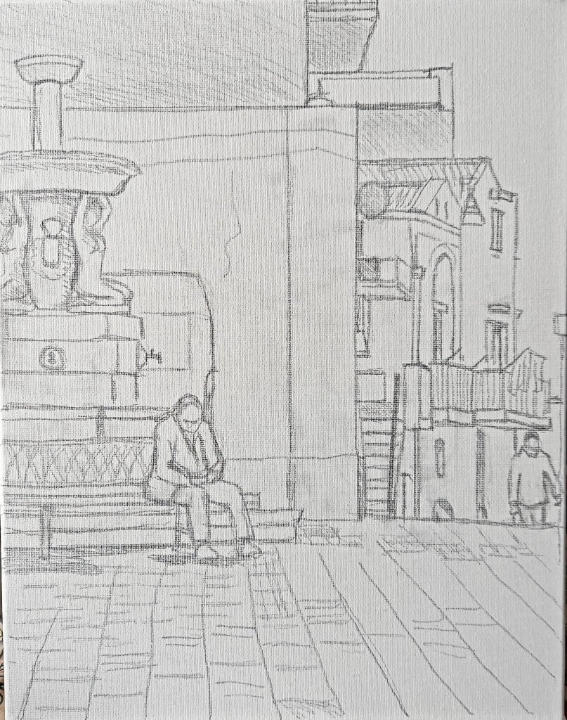 The rest of the day I’ve been drawing 2 local scenes and then trying to paint the light in one. It’s not easy, but I might manage it.