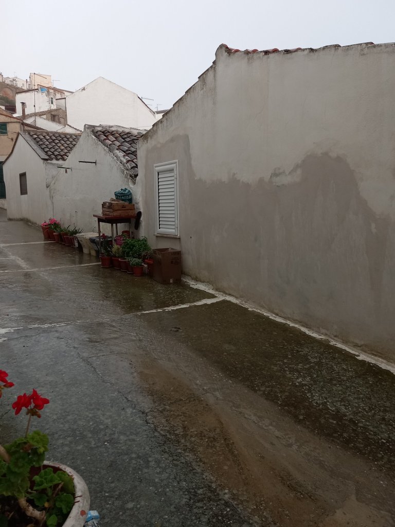 Outside the rain is running like a river past my door. ( the important word here is “past”) . There is a big drain at the end of the street where the water pours through and then down the hill.