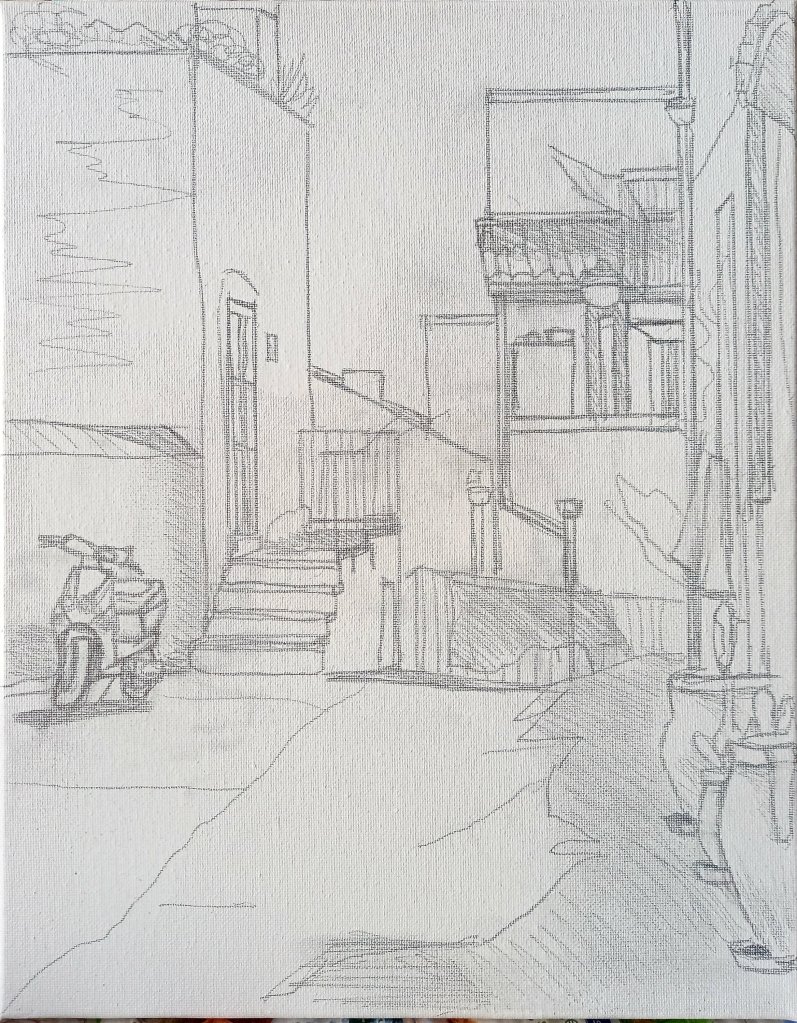 After having another quick experiment with my new dress I got to work and finally I completely changed the foreground in my painting. I’m disappointed that I couldn’t make it look how I thought it should, but I’m pleased with what I did to make it work as a painting.
