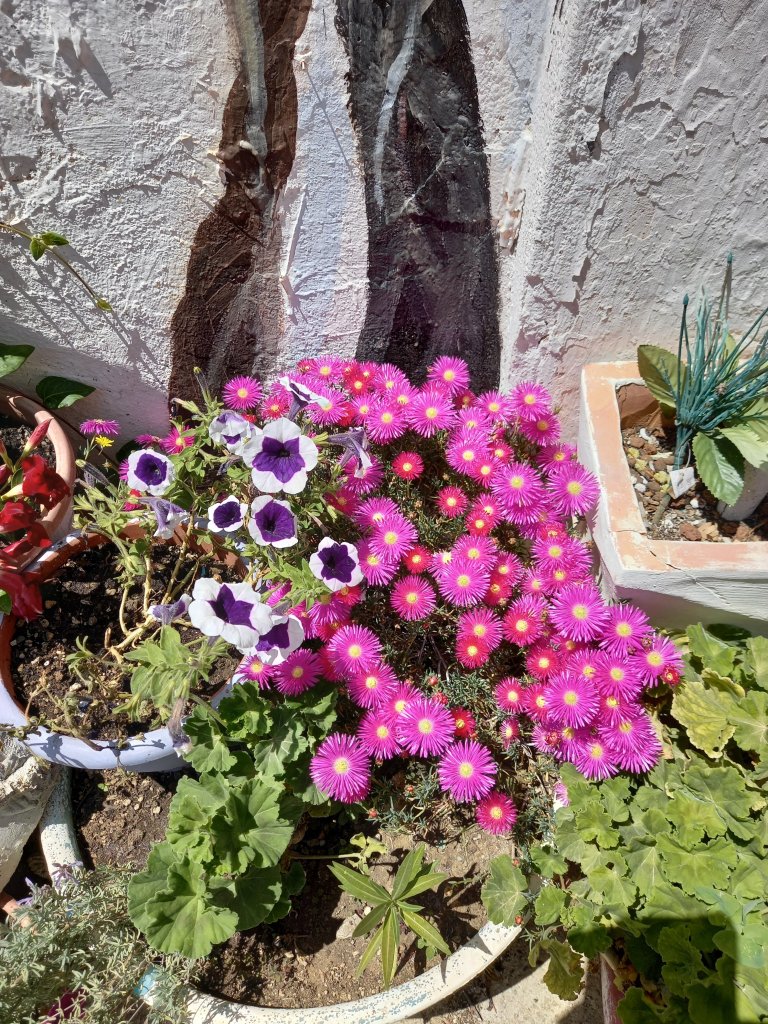 Right now it’s just perfect sitting here. There’s a light wind, just enough to blow the rose petals about and the shadows are lovely on the wall opposite.