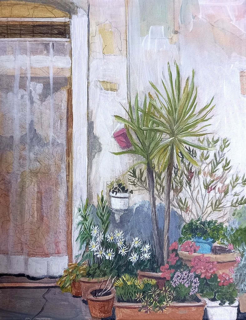 Today I drew my next 2 street scenes and then spent several happy hours painting flowers.