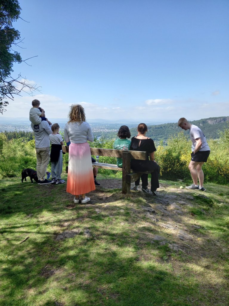 Today we went out for a walk with quite a lot of family up Moncrieff hill which is not far from Perth .
