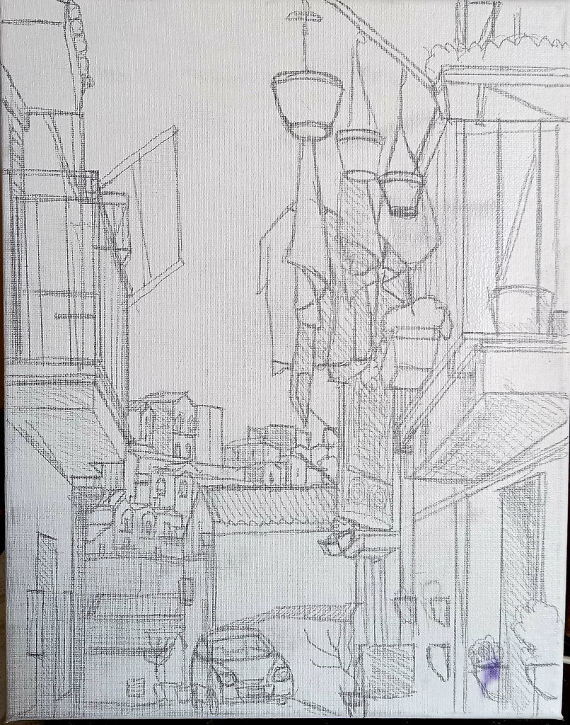 Just up these steps I saw an old lady struggling to hang out her washing and offered to help.